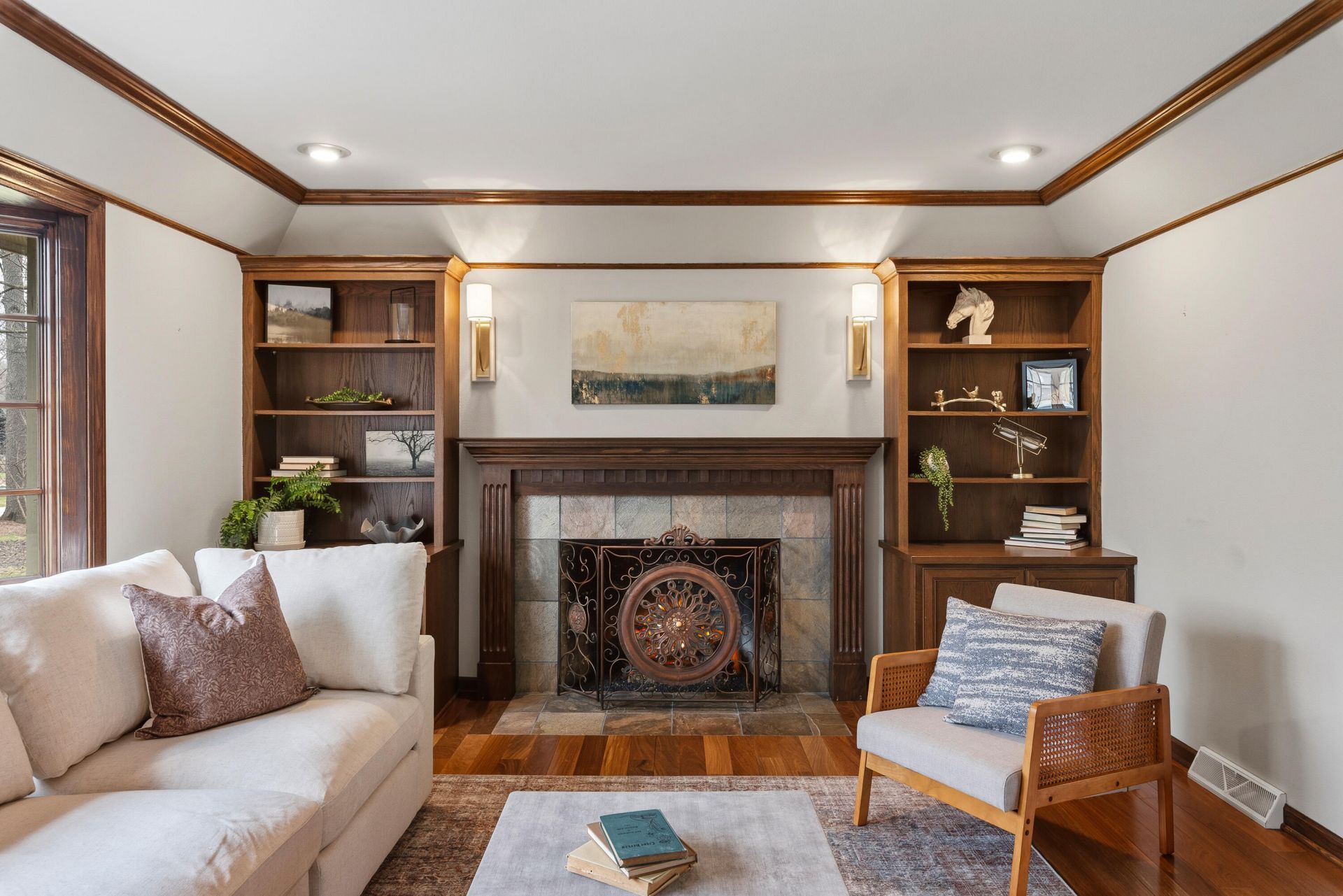 Perched atop a hill at the end of a quiet cul-de-sac, this warm and inviting home is certain to please. The newer sunroom and patio overlook the lushly wooded lot. Equally inspiring is the adjacent and thoughtfully appointed kitchen; perfect for entertaining and holidays. Custom built-ins and hardwood flooring thru out add character and function, while the dramatic windows and sky lights bathe the home in sunlight. Multiple fireplaces add to the cozy feel. Upstairs, the spacious primary ensuite offers a spa-inspired bath and an expansive walk-in closet. The finished lower level with recreation, work-out, and theater rooms provides additional room to unwind. Arguably, this is the finest home on the finest lot in this upscale neighborhood. Don't miss once in a lifetime opportunity!