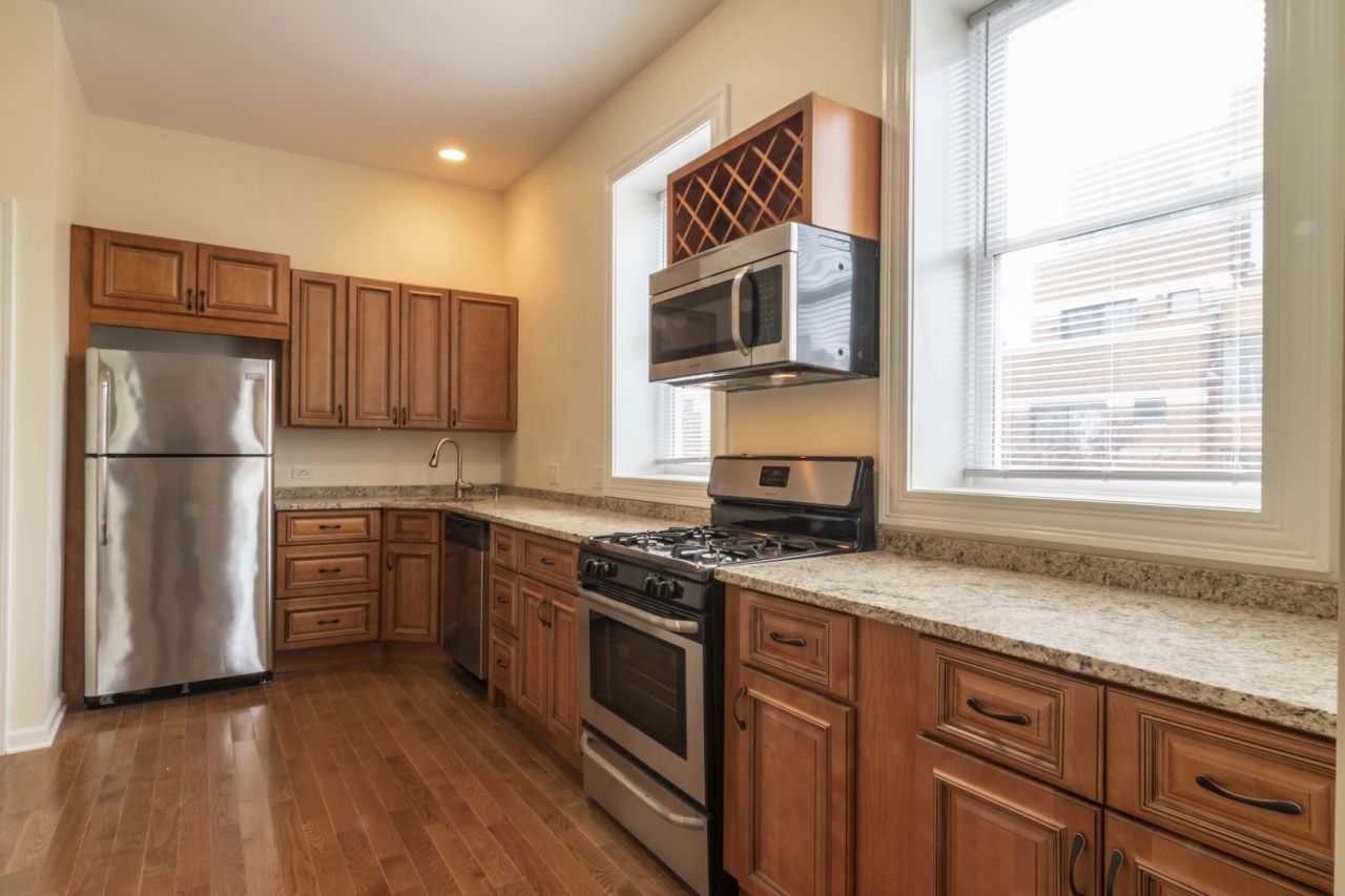 Spacious, recently rehabbed second floor unit in pristine condition! Large windows throughout allow for a bright, sunny space. Unit features updated kitchen with granite counters, stainless steel appliances and in-unit washer/dryer! Good sized bedroom with ample closet space. Brand new condo quality bathrooms and kitchens. Central air and heating. Hardwood floors throughout. Granite countertops and brand new stainless steel appliances. Brand new never lived in before. Great location that offers plenty of options for an easy walk to Division or Chicago food/shopping and entertainment. 1 garage parking spot available