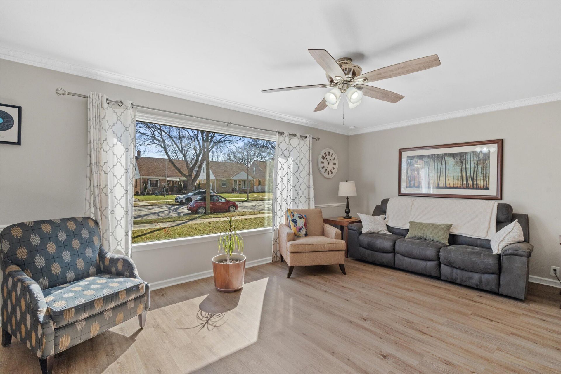 Spacious 5-bedroom, 2.5-bath all-brick home offering room to grow and numerous updates throughout. The main level features three bedrooms and new flooring (2024), along with new carpeting (2023) and a refinished tub (2023). The kitchen offers ample cabinet space and updated appliances, including a refrigerator (2017), dishwasher (2018), and stove (2019). Major updates include a furnace (2021), water heater (2019), roof (2015), and garage roof (2022). The finished lower level includes a full bath and laundry area, adding extra living space. Enjoy a fenced yard, large 2.5-car garage, and additional parking, all within walking distance to parks and local amenities.