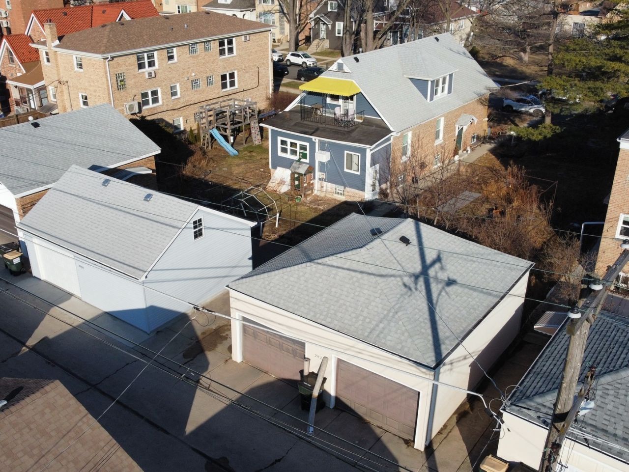 Rare opportunity to own a 2 unit brick bungalow centered on 3 lots with 3 separate pins totaling 100' of frontage. This unique setup includes 3 garages at the rear of each lot including features like contractor height doors, work shop setup and party doors to the yard. The building features a first floor unit with 3 bedrooms, full bath, back porch. 1st floor can easily be duplexed to the lower level which has recently undergone big improvements such as newer boiler, radiant floor heat, plumbing for 2nd bathroom, exterior drain tile and 2 egress windows, all new copper plumbing! The 2nd floor unit features 2 bedrooms a living room area and kitchen with eating space open to a 2nd floor balcony. Zoned R2- This property offers many opportunities to easily deconvert to a single family , sell adjacent lots or keep as an income property.