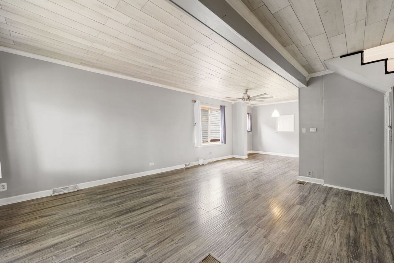 Charming Bungalow with Second-Floor Addition! The first floor offers a welcoming living room with a dining room, an updated kitchen with stainless steel appliances, and a convenient half bath. Upstairs, you'll find two comfortable bedrooms, a office space, and a full bathroom. The partially finished basement provides extra living or storage options. Step outside to enjoy a spacious yard with a large deck, perfect for entertaining, along with a two-car garage. Additional features include central air conditioning and gas-forced air heat. Located near local schools, public transportation, and just minutes from shops, restaurants, Hiawatha Park, Harlem Irving Plaza, and more-this home combines comfort with convenience in an ideal setting.