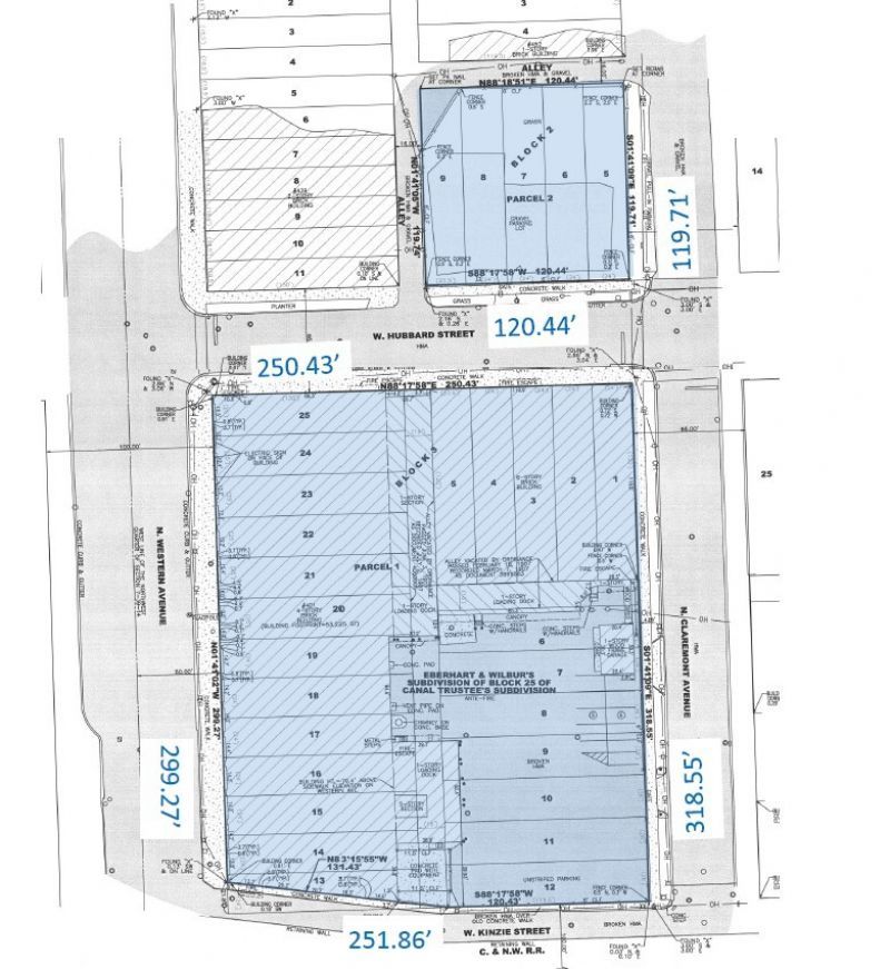 FOR SALE OR LEASE - The West Hub @ 401-435 N. Western Ave, the largest redevelopment opportunity west of Ogden! This expansive 274,550 SF concrete and timber loft complex spans 1.803 acres with an additional 0.3-acre surface lot and consists of TWO interconnected buildings featuring rich industrial character, flexible layouts, and significant infrastructure. The property offers 7,000 SF to 151,800 SF available for lease, including a first-floor 18,295 SF warehouse and 10,470 SF office offered as-is at $8 PSF MG, with floors 2 through 6 available as-is at $5 PSF MG. Generous building features include a large courtyard parking area, fourteen exterior truck-level docks, heavy floor loads up to 200 lbs per SF, 10'-14' ceiling heights, three freight elevators, one passenger elevator, and full sprinkler coverage throughout. Ideally located in the rapidly expanding Kinzie Corridor just outside Chicago's CBD, the property provides direct access to the Western Metra Station and five major bus routes, along with exceptional visibility-34,400 vehicles per day on Western Ave, 18,400 on Grand Ave, and exposure to approximately 89,500 daily Metra commuters. The East Building offers six stories with approximately 14,360 SF floor plates along W. Hubbard Street, while the West Building delivers maximum prominence with 300 feet of frontage on N. Western Avenue and 250 feet of southern frontage along the elevated rail line, featuring floor plates around 32,500 SF. Located within Enterprise Zone 4, the Kinzie Industrial TIF District, and eligible for Chicago PACE financing, the site benefits from powerful redevelopment incentives and zoning that supports a wide range of industrial, office, and flex uses.