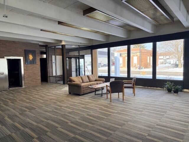 Modern masonry construction. the floorplan is very flexible. At-grade entry. there are three main floor entries. this property could flex to retail, service, municipal, office , assisted living, , distribution, medical and even multi-family. easy access via two street entries to a 12 car parking lot. there is also a green space behind the main building which abuts to the park.there are currently 5 private offices and a large lobby.