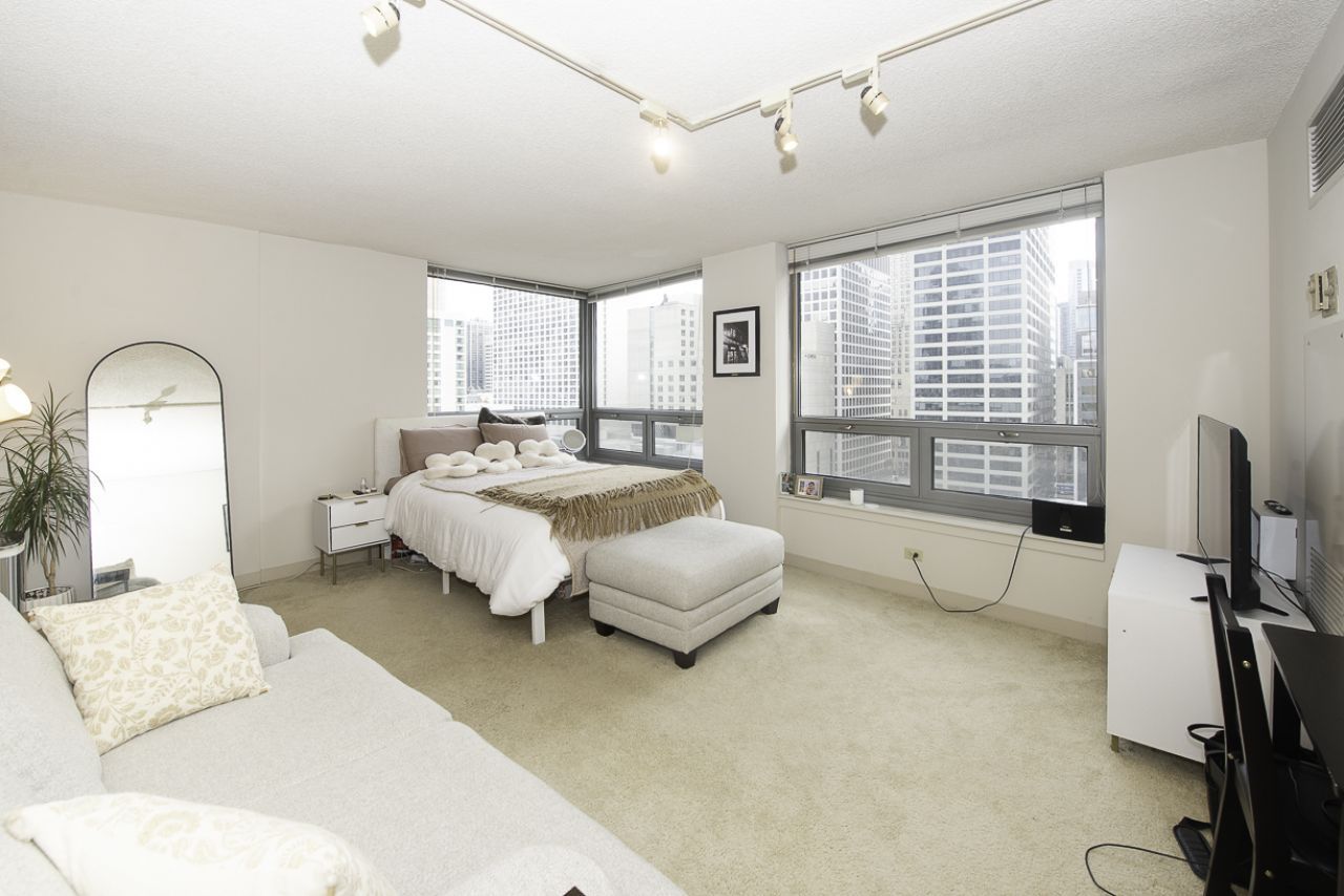Experience the best of downtown living in this sun-drenched corner studio. North and East exposures flood the space with natural light and offer sweeping city views. This isn't your average studio; enjoy the convenience of in-unit laundry, a generous walk-in closet, and a fully equipped kitchen featuring a built-in microwave and dishwasher. The building offers a five-star lifestyle with 24-hour door staff, an indoor pool, a sauna, and an expansive fitness center. Your monthly assessment is truly all-inclusive, covering heat, A/C, water, and trash. Located steps from Michigan Avenue, the Riverwalk, and the Red Line, the city's best dining and nightlife are your front yard. Parking may be available for rent or purchase in the attached garage.