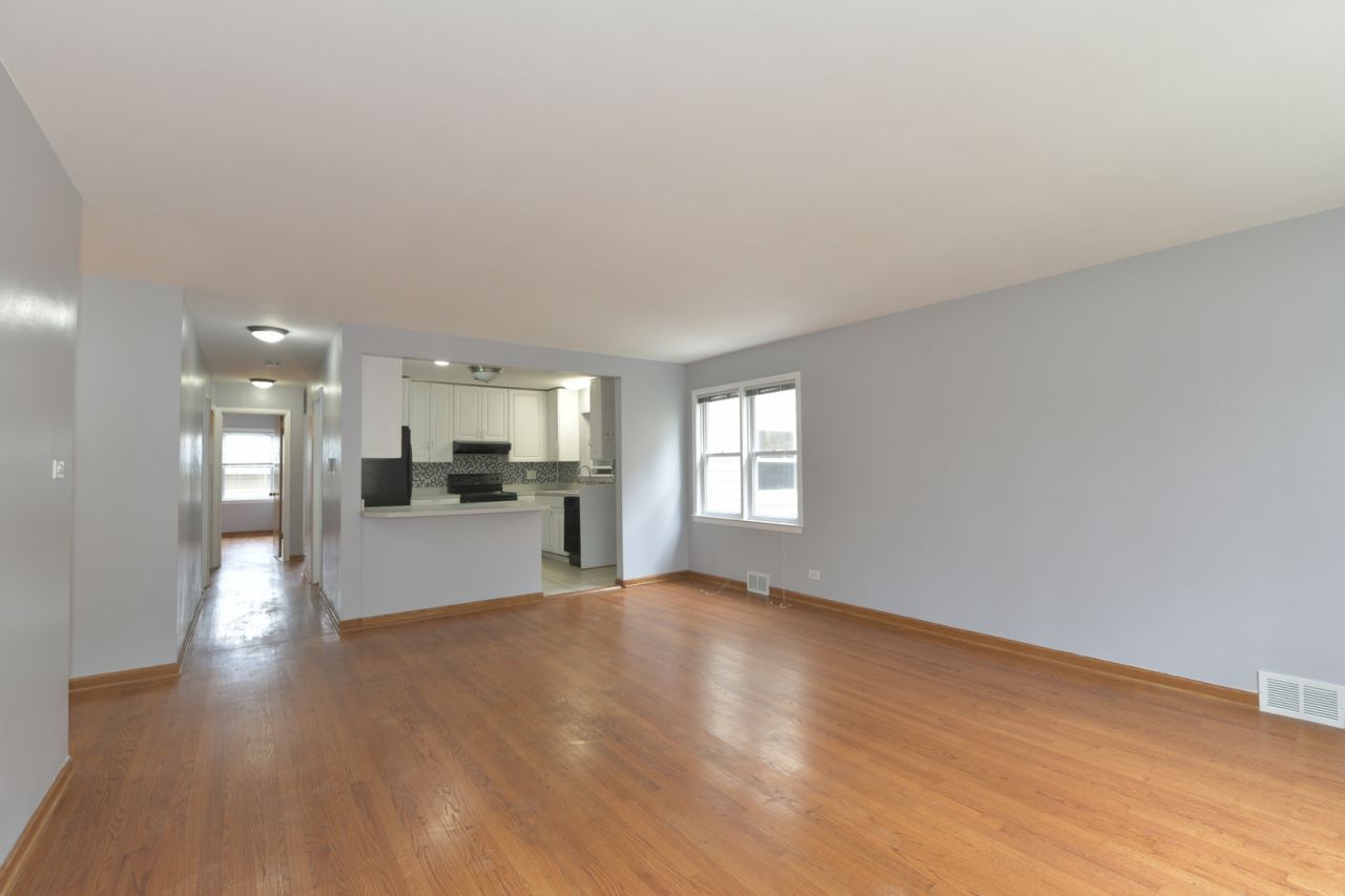 Located on the first floor, this well-maintained 3-bedroom apartment is available for occupancy May 1st. The unit offers a bright and open living and dining area with plenty of natural light. The kitchen has been opened up to provide additional counter space and features a refrigerator and oven/range. No dishwasher. Hardwood flooring runs throughout the unit, with tile in the kitchen and bathroom. Enjoy the comfort of central heating and air conditioning. All bedrooms offer good size and closet space. One rear parking space is included. Coin laundry is available in the basement. The property is equipped with solar panels, helping to reduce electric costs. Conveniently located near Oakton Street, with easy access to shops and restaurants.
