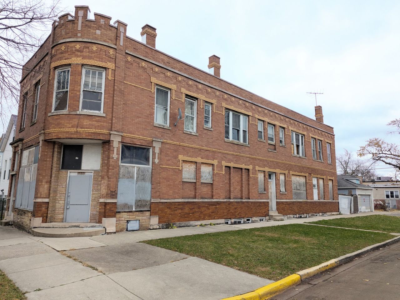 Corner mixed-use brick building with huge upside and the ability to be purchased with an renovation loan, giving buyers a clear path to finance both acquisition and rehab in one package. This boarded, vacant 2-story asset offers a first-floor commercial storefront on a high-visibility corner plus multiple residential units above, along with a detached 2-car garage and full basement. Original masonry, woodwork, tin ceilings, and large window openings give the property tons of character and a strong foundation for a full gut renovation into cash-flowing rentals, live/work space, or a boutique mixed-use project. Needs complete rehab inside and out: roof, porches, windows, mechanicals, plumbing, electric, kitchens and baths, and interior finishes-ideal for an investor or owner-occupant looking to bring this classic corner building back to life. Being sold strictly as-is, where-is; buyer to verify all measurements, zoning.