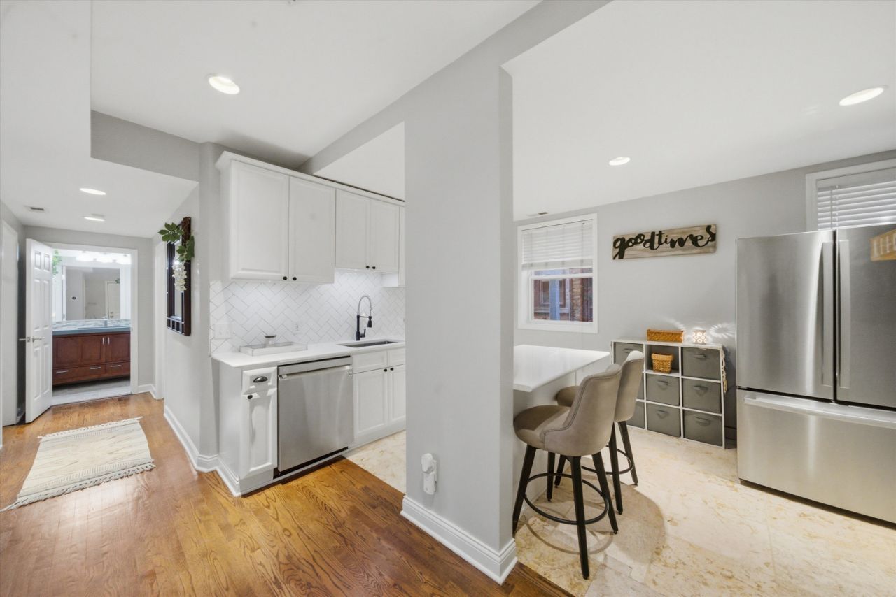 Spacious three-bedroom, open-concept condo in a prime location! This move-in-ready home features beautiful hardwood floors throughout and abundant natural light from oversized windows, especially in the living room. The updated kitchen offers modern finishes, including new cabinetry, a kitchen island, quartz countertops, and a subway tile backsplash, along with stainless steel appliances. Additional highlights include crown molding, central heat and A/C, and a newer HVAC system (2021) with a smart thermostat. The building offers free laundry, a large bike room, additional private storage, and shared courtyard. Enjoy the convenience of being directly across from the Red Line and just two blocks from the beach. Edgewater continues to grow with new shops and restaurants, making it a vibrant neighborhood for a variety of lifestyles. Nearby rental parking options are available. Explore the property in 3D-click the 3D tour to walk through every detail. Welcome home!