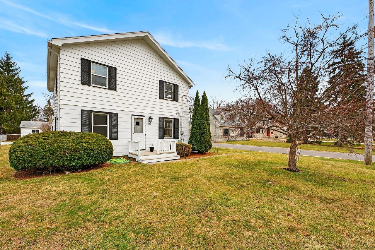 Updated Colonial located on a quiet, tree-lined dead-end street. Just steps from Brown Deer Park and the Oak Leaf Trail. Situated on nearly 1/2 acre, this move-in ready home offers space, privacy, and modern updates throughout. Updates include: New floors, new kitchen, beautiful primary en-suite with marble tile , soaking tub and convenient stackable washer and dryer, new windows, roof, etc. . Spacious yard is fully fenced and ideal for outdoor enjoyment. Ample garage and workshop space with a 3-car attached garage plus an additional 2-car detached garage with electricity. An ideal location; rich and lush green; just off Bradley; close to parks, trails, and everyday conveniences while offering a peaceful residential setting.