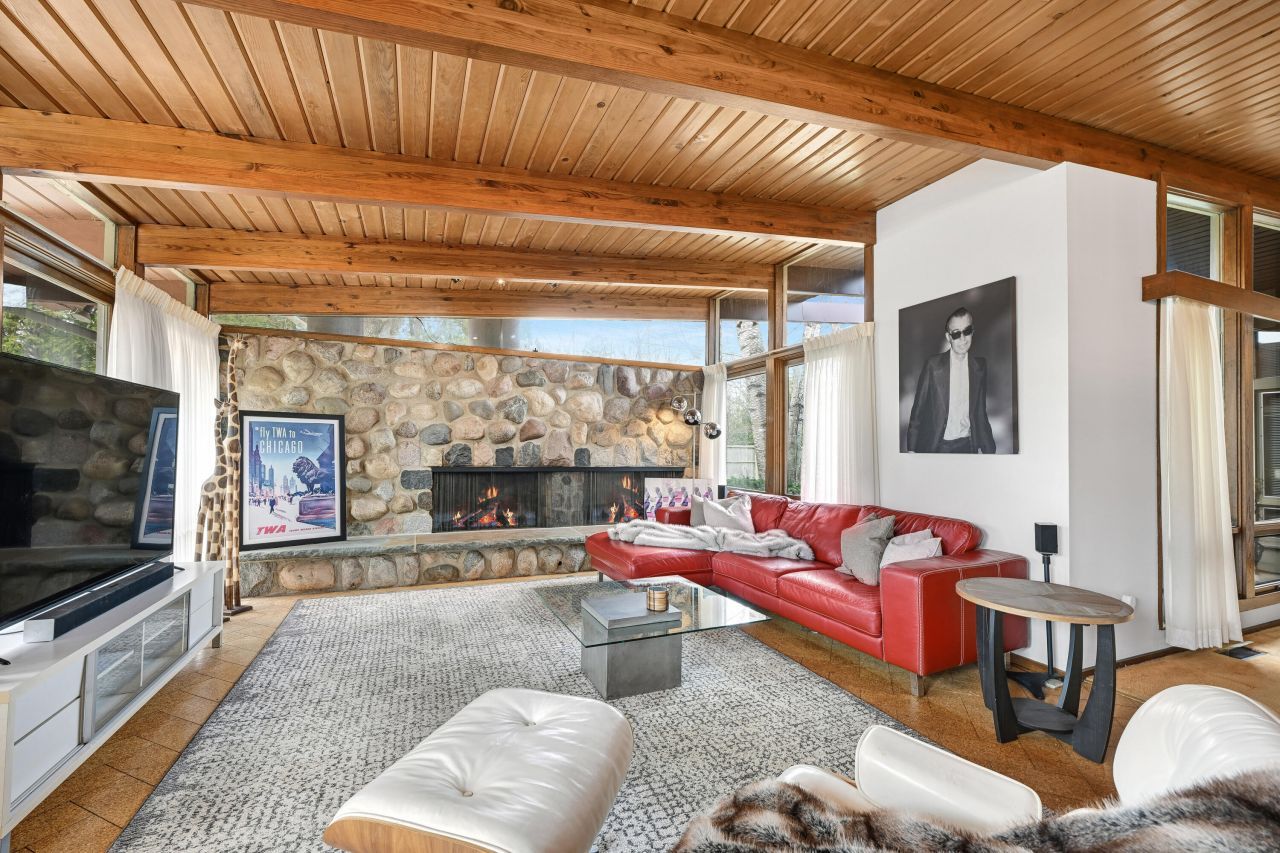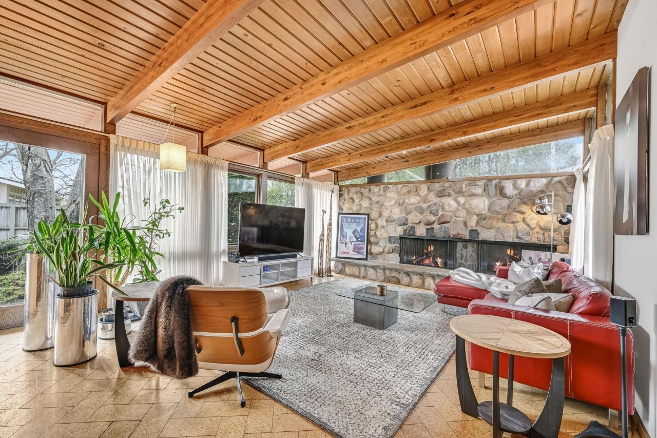 Stunning Mid-Century Modern ranch, where classic design meets modern comfort. Open concept w/clean lines & expansive windows. Interior showcases impeccable craftsmanship & rich woodwork throughout. Family room invites you to unwind w/NFP & built-in wet bar- perfect for entertaining. Retreat to the primary suite w/ample natural light, vaulted ceilings, private bath & plenty of closet space. Outside, enjoy a beautifully fenced yard w/a patio and built-in outdoor grill. Additional features...central vac, security system and underground sprinkler system. Every corner of the home reflects iconic mid-century aesthetic, making it a rare gem for lovers of design and function. Located on a quiet dead end street & just steps away to Bayside Middle School. Home was custom designed by Jordan Miller.