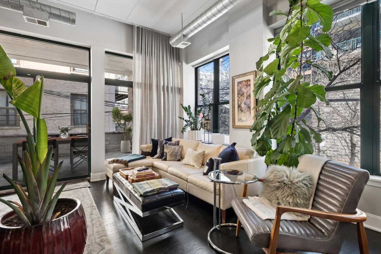 Rarest unit offered this year just in time for the Spring market. Residence A2 offers an attached private 26' terrace with water and electric. Very special northeast corner home fully renovated with professional designer, in a boutique style, all concrete (Flex-core) building located in the heart of the West Loop offers the finest contemporary finishes. Small elevator building, Butterfly system and camera security, attached, heated garage parking. Interior features include a very inviting formal entry, custom contemporary light fixtures throughout this home, separate laundry room with full size, front loading Whirlpool (Hybrid Care) washer and dryer, wine fridge, 1.25 white quartz with grey veining folding counter. All tongue and groove hardwood floors. Wide plank flooring in primary suite, walk in closet with floor to ceiling built-in storage. Five panel, rectangle doors throughout. Ensuite bathroom featuring porcelain floor tiles, frameless shower glass, custom, ridged imported, colored subway tile, black plumbing fixtures, recessed niche for accouterments, superb custom-tiled basin, raised all wood vanity, straight edge drawer hardware, 1.25 marble counter, under mount Rainbow sink, recessed medicine chest. Silhouette shades, honeycomb, bedside light fixtures, 7-blade ceiling fan. Impeccable baseboards and moldings, open kitchen concept all wood, 42 cabinets with substantial crown on upper cabinets, dovetailed joints. Entertainer's peninsula with waterfall edge, quartz counters, full height backsplash, deep, single, stainless steel Moen sink, Blanco sprayer faucet, push-button disposal, French door refrigerator, Bosch dishwasher, all stainless steel appliances. Guest bathroom dressed in large format porcelain Green Home Chicago ceramic tile, frames glass, niches. Second bedroom currently partially open as versatile space. Separate dining and living areas with room for home office. Custom Millwork and stone/quartz highlights and accents, a pair of low profile oil fireplaces. No expense spared. Bring your most discriminating buyer. Prime garage parking space @ $30,000 additional.